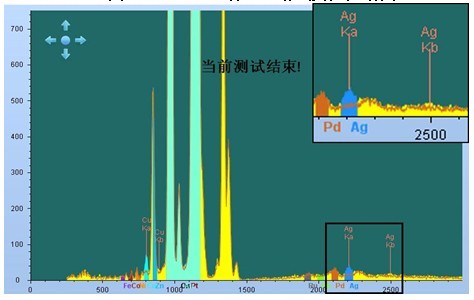 拔取某企业出厂空闲饰物,根据EDX 3000PLUS检测设备,对其中断检测图片软件。一下图2一样,为检测设备检测图片软件点,可将仿品需检测图片软件点挪动到十字光标之间中断检测图片软件。