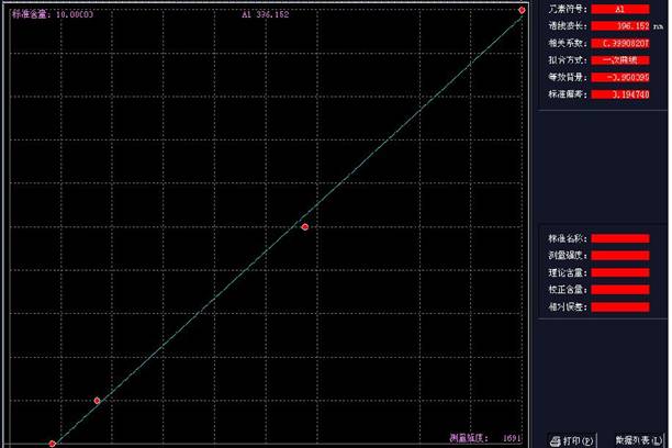 (A道线性网络网络式子:Y=875.144*X-17.003);(A道线性网络网络值:0.99916)见图1