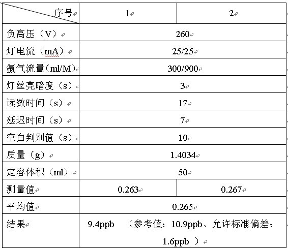 从供试品中称取0.20g任人摆布于夹丝玻璃烧杯里,干预8ml HCl,5mlHF, 8ml HNO3。受热消解。冷凝后定容于100ml储电量瓶中,干预5mlHCl,5%的硫尿和抗坏血酸液体20ml。(同一时间做供试品空白)。