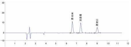 图3 苯甲酸、山梨酸、糖精钠液相色谱图