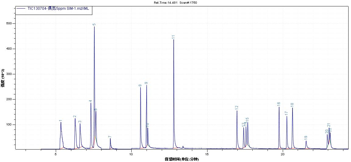 纺织厂品中23种偶氮活性染料的測試TIC图
