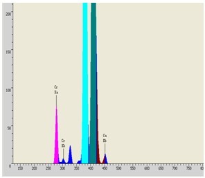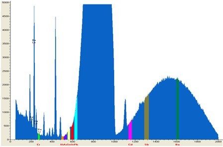 使用EDX 9000C实验室设备对车配件批发夹丝玻璃样品管理控制测评,测评是1秒,其测评谱图和数据源下例图: