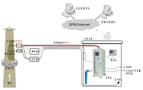 采样探头装置于企业废气排口,排口被测废气被负压抽泵抽取进入采样探头探杆(不加热),颠末陶瓷滤芯进入伴热管线(伴热温度可设置),样气在伴热管中持续传输至预处置体系,在预处置体系颠末二级过滤和分流后根据必然流量送至在线气相色谱仪(GC-FID)。在线气相色谱仪节制内置主动取样立体十通阀和定量环体系取1mL的被测样气,借助载气送入色谱柱分手和FID做定性、定量阐发。阐发成果经由过程工控机保管,并和排气筒监测排放参数一路经由过程数采仪送至环保监控平台。