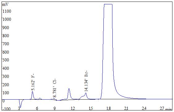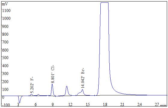图4 2.0µg/mL F-、Cl-、Br-对此性公测谱图